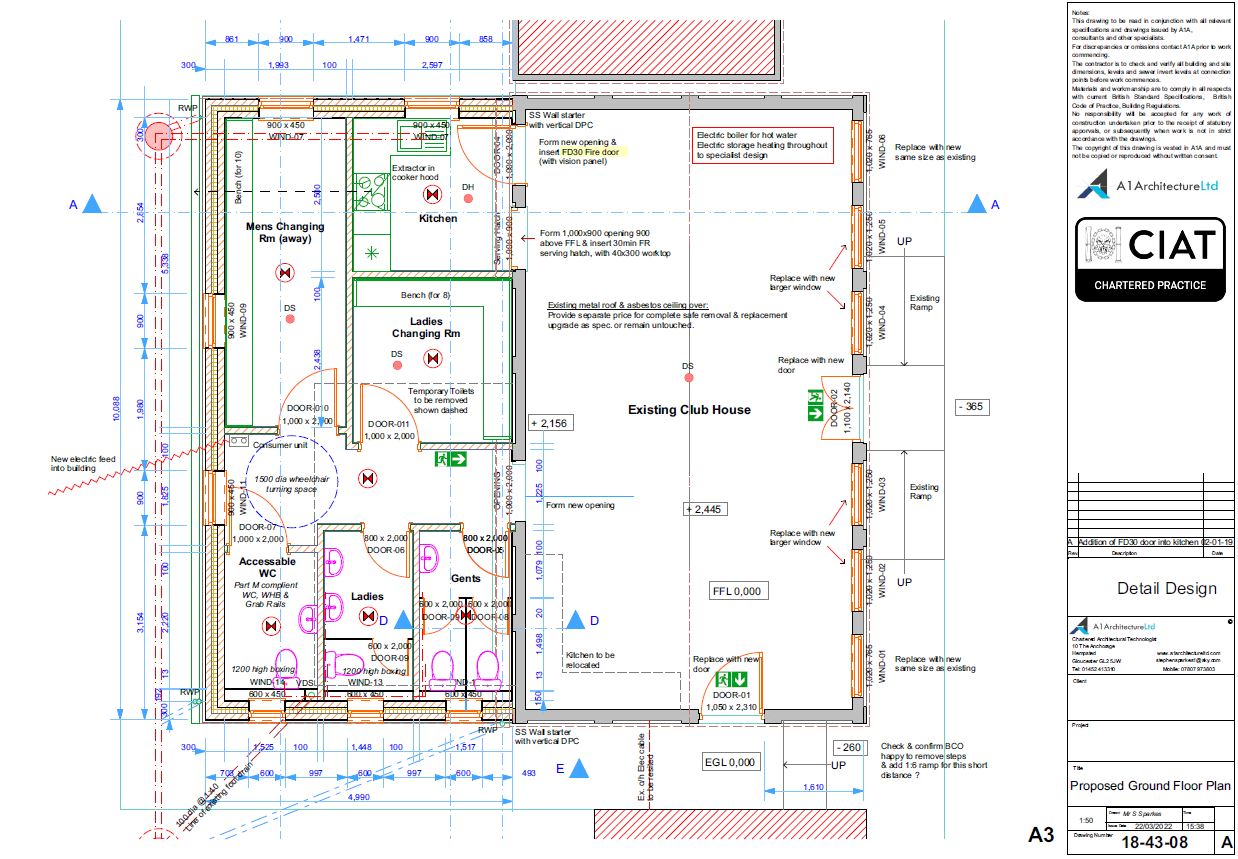 Our client commissioned us to make design improvements with extension and internal alterations to their sports club, to provide proper toilet and changing facilitates. We carried out a full measured building survey and produced all documentations for submissions to obtain all permissions and approvals.