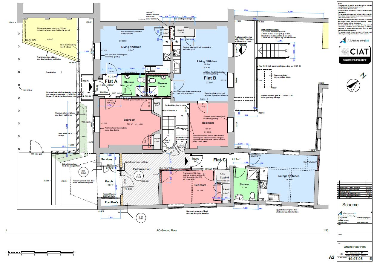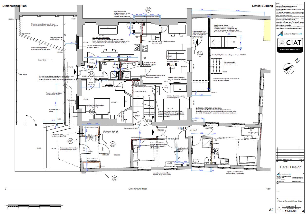 We were commissioned to carry out a full measured building survey, and provide all drawings and documentation to a Listed office buildings that was going to be converted into a total of 19 flats in Gloucester town center. We obtained Planning, Listed and Building Regulations approvals.