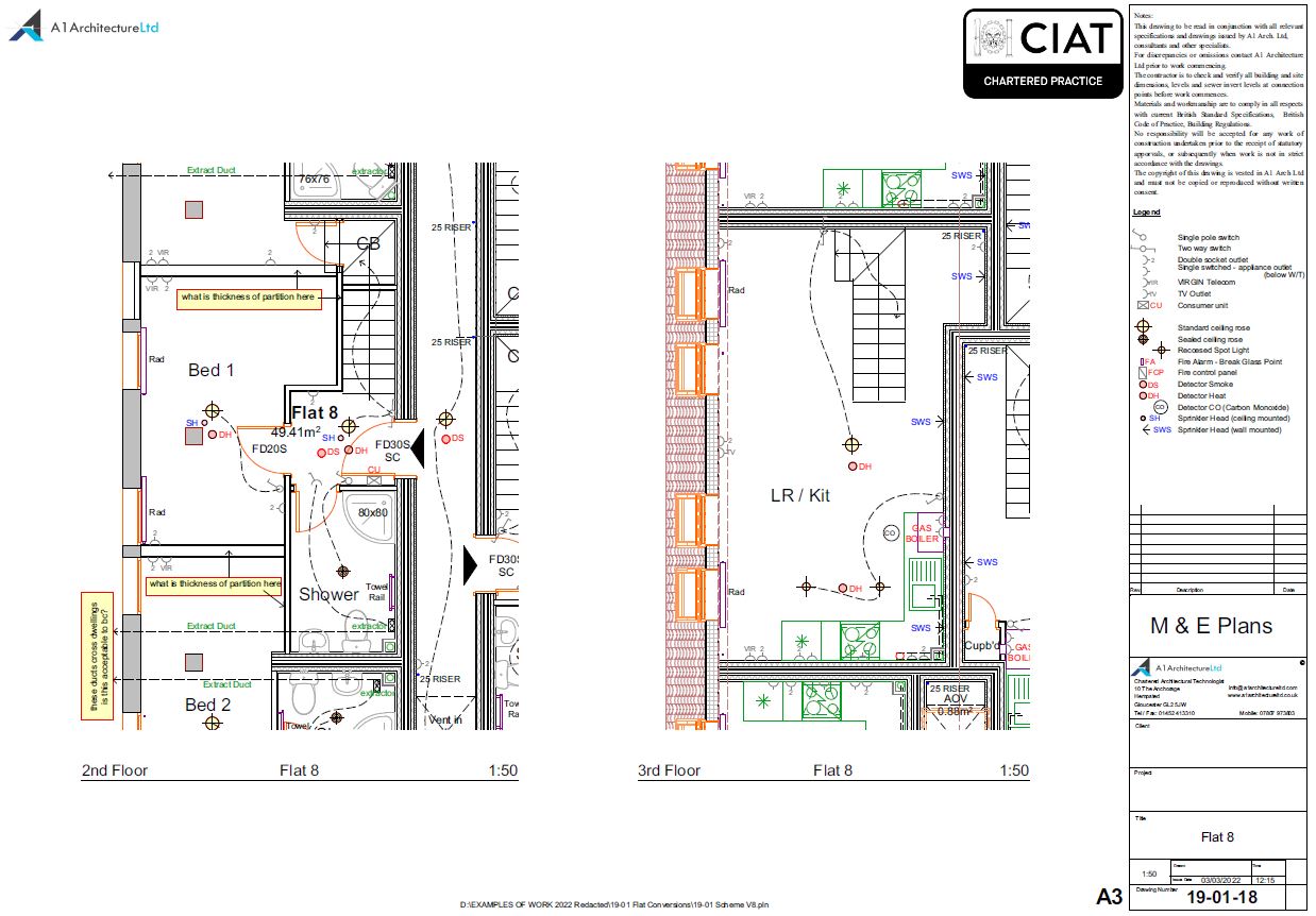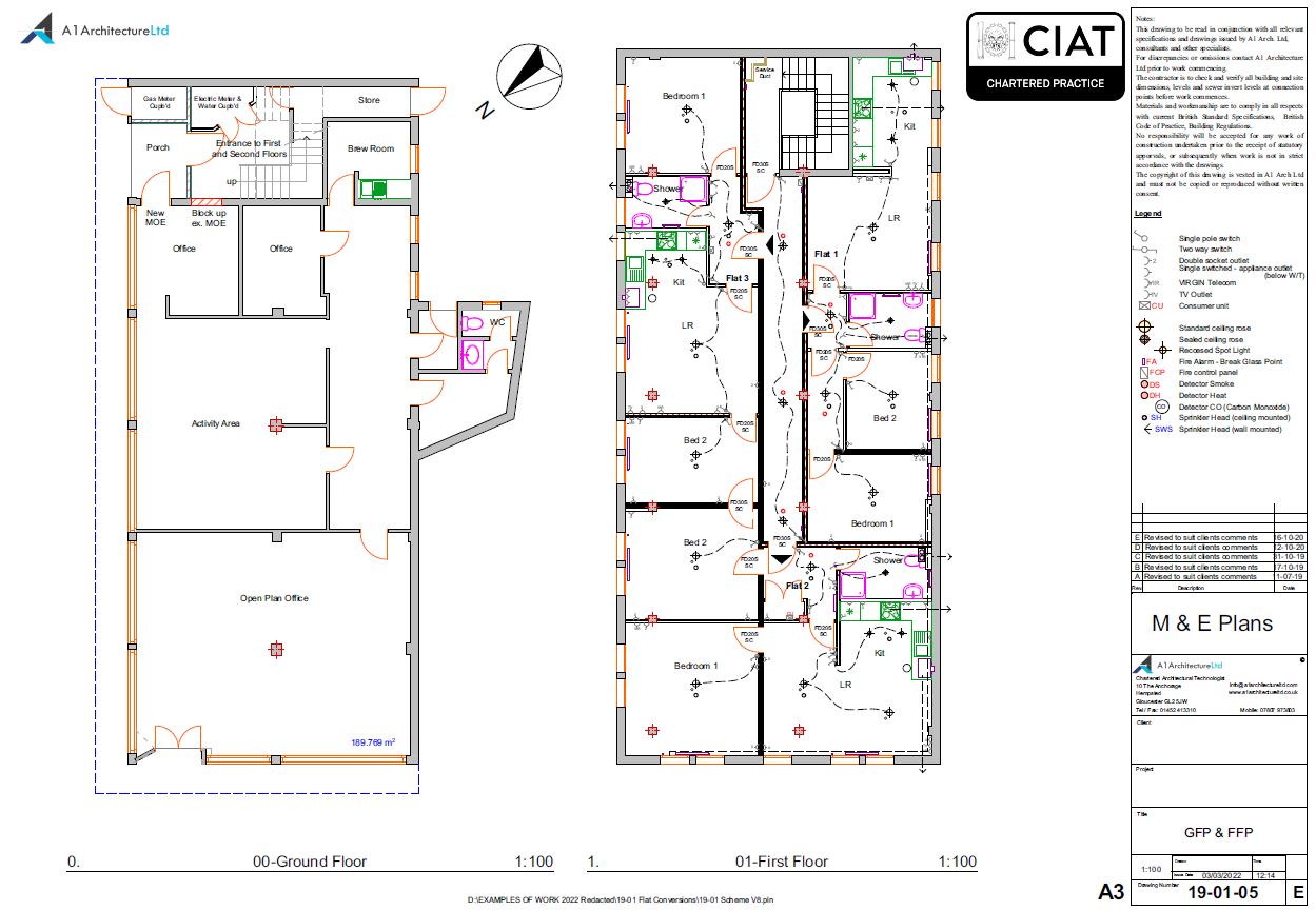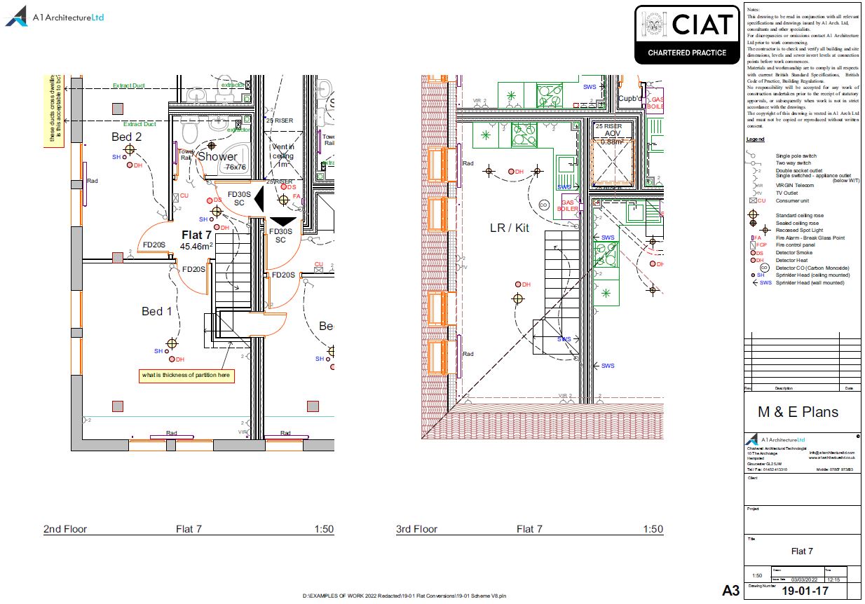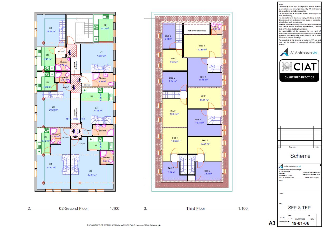 Office conversion into flats Gloucester – Two Listed office buildings converted into a total of 19 flats in Gloucester. Due to restricted headroom on the top floor we had to raise the roof slightly. In addition we had to provide a unique fire escape solution due to the excessive travel distances. However whilst liaising with specialists we obtained the necessary Planning, Listed and Building Regulations approvals.