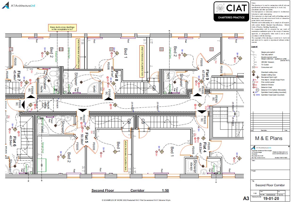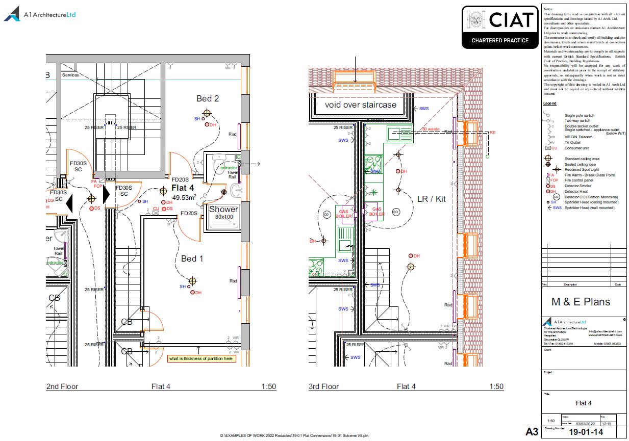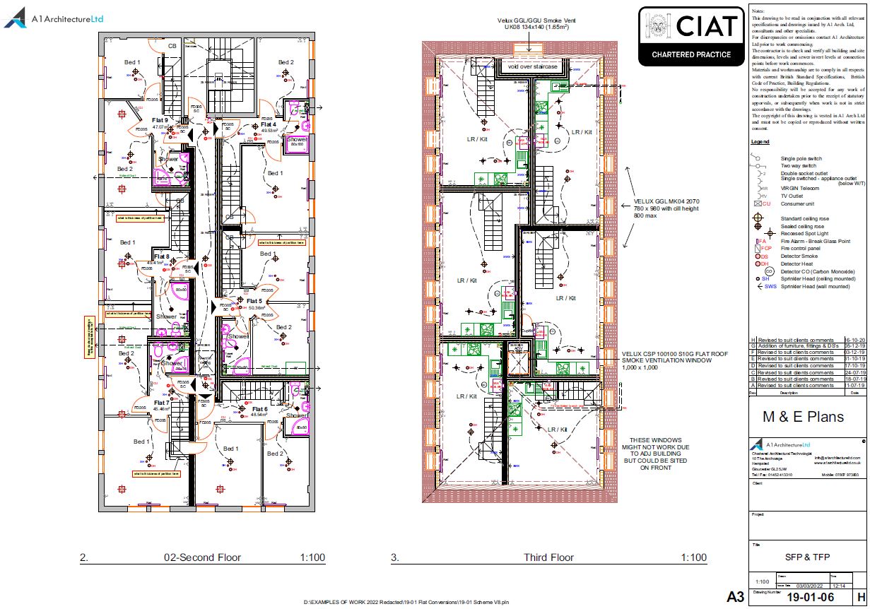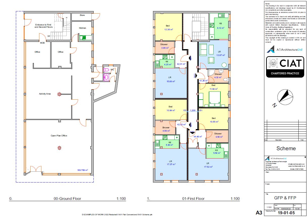 Office conversion into flats Gloucester – Two Listed office buildings converted into a total of 19 flats in Gloucester. Due to restricted headroom on the top floor we had to raise the roof slightly. In addition we had to provide a unique fire escape solution due to the excessive travel distances. However whilst liaising with specialists we obtained the necessary Planning, Listed and Building Regulations approvals.
